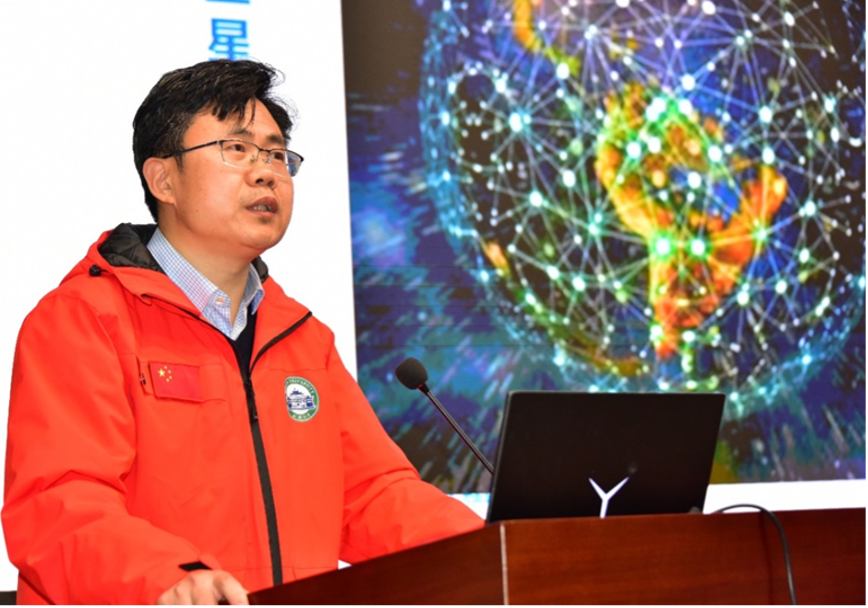 王密教授就双清一号/珞珈三号01星卫星研制背景、技术创新和科学试验进行了详细汇报。双清一号科学试验卫星是一个兼备“多模、开放、智能、互联”的新一代互联网智能遥感卫星平台,针对传统遥感业务链路长、系统响应慢等问题,构建了“星地协同的在轨高精度定位与智能处理技术”的全新技术体系,开创了“面向地面移动终端的互联网智能遥感卫星在轨处理与实时传输服务”的新模式。这种新模式打破了传统卫星遥感数据服务模式,缩短了卫星数据获取、处理、传输和分发的时间,能够有效提高突发事件的动态应急响应效率,为遥感数据大众化移动终端服务提供有力支撑。目前,双清一号在轨科学试验测试表明,从卫星端开始获取数据到用户移动终端接收并显示卫星视频数据耗时仅约8分钟,实现了分钟级的遥感信息实时智能服务。