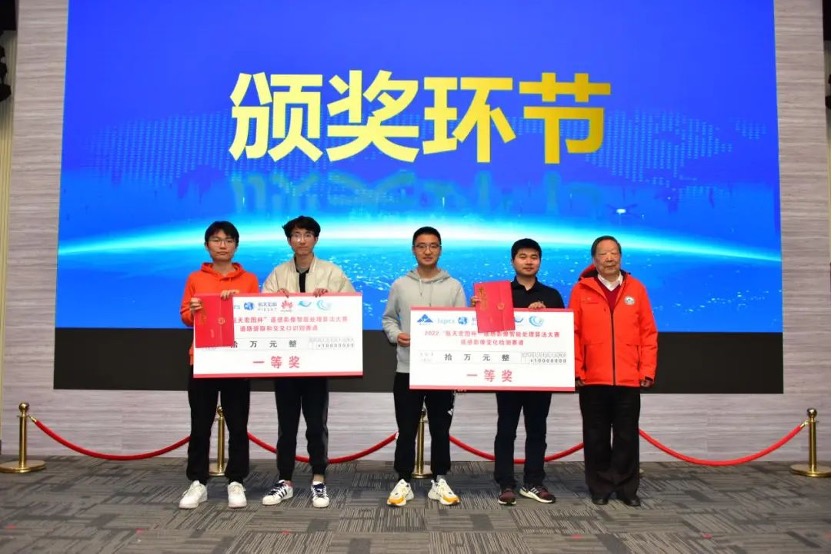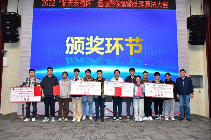 研讨会当日还举行了2022“航天宏图杯”遥感影像智能处理算法大赛总决赛颁奖仪式。该赛事得到了国家自然科学基金委的高度重视,得到了航天宏图信息技术股份有限公司、华为技术有限公司等企业的积极响应,同时也获得了国际摄影测量与遥感学会(ISPRS)的支持,旨在“以赛促创”,推动人工智能技术在遥感影像领域的创新发展,为实现空间信息处理与应用能力的大幅提升提供支撑。该大赛在国家自然科学基金委信息科学部、“空间信息网络基础理论与关键技术”重大研究计划指导专家组的领导下,已成功举办六届。本届大赛自2022年8月18日开赛以来,吸引了来自中国、美国、英国、荷兰、土耳其、澳大利亚、巴基斯坦等超过15个国家的676支队伍共1475位开发者报名参赛。国际赛道于2022年11月20日决出最终获奖名次,国内赛道的两个赛题于3月16-18日,经过36小时实时竞技环节和评审答辩环节,在激烈的竞争中角逐出最终获奖名次。