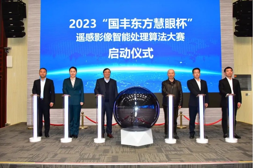 何杰、龚健雅、姜丹,烟台国丰投资控股集团有限公司副总经理刘志军,航天宏图信息技术股份有限公司廖通逵总经理、中国电建集团山东电力建设第一工程有限公司青岛公司总经理马先秋作为启动仪式嘉宾共同点亮了象征2023年度赛事的灯球。