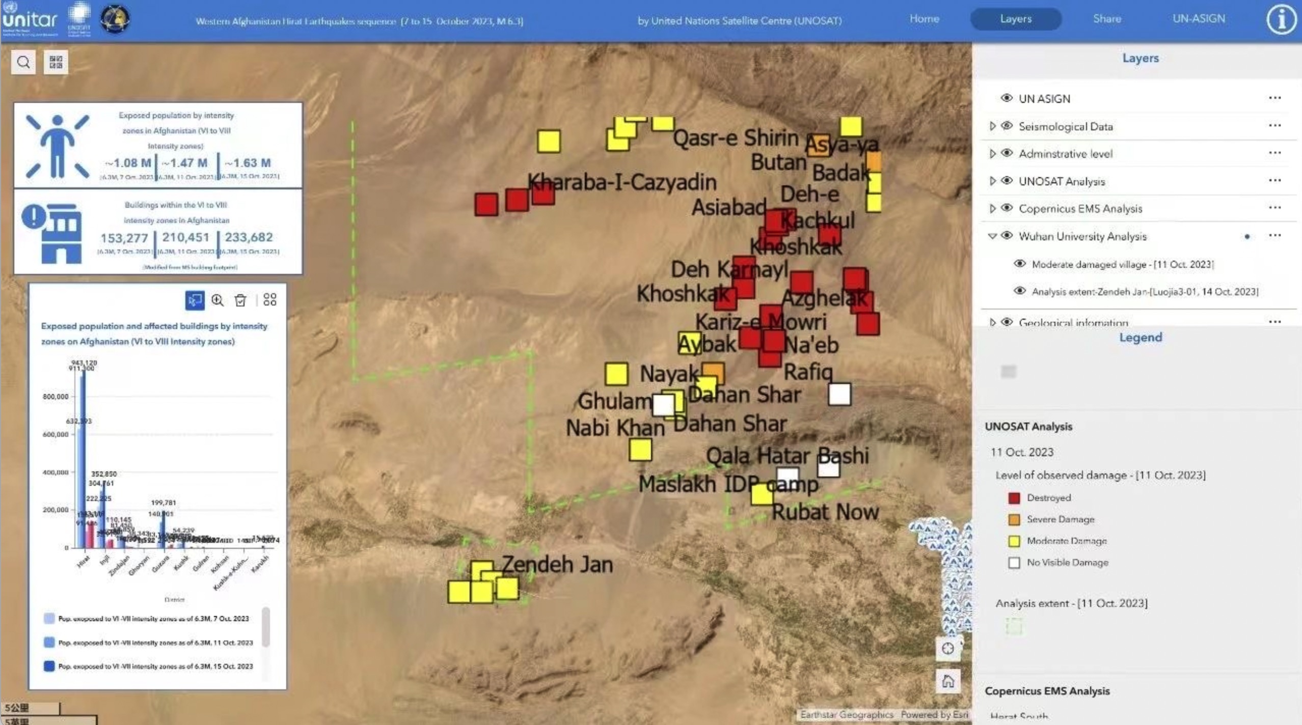 新闻网讯(通讯员姚实)近日,联合国卫星中心(UNOSAT)发布了阿富汗地震灾情评估结果,报告采用了我校“珞珈三号01星”拍摄的灾区数据分析结果。